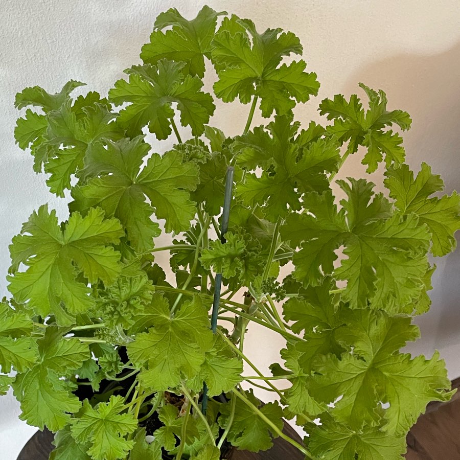 Ma duże, jasnozielone, omszone liście, pachnące lekko różanym aromatem. Lubi słońce i obfite podlewanie. Odstrasza komary. Dorasta do ok. 100 cm. Wykorzystywana do aromaterapii i naparów kojących nerwy. Łatwa z utrzymaniu i bardzo wdzięczna roślina.
