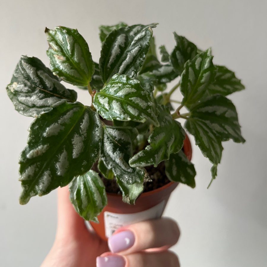 Roślina o niskim pokroju 30-40 cm wysokości oraz ok. 20 cm szerokości. Ciekawie ubarwione i dekoracyjne liście .. Blaszka liścia ma trzy nerwy, wdłóz nerwu są ciemnozielone .Liście mają karbowaną fkturę i srebrne plamki. Aby zachować jej zwarty pokrój należy ją przycinać , lub odnawiać z sadzonek pędowych.