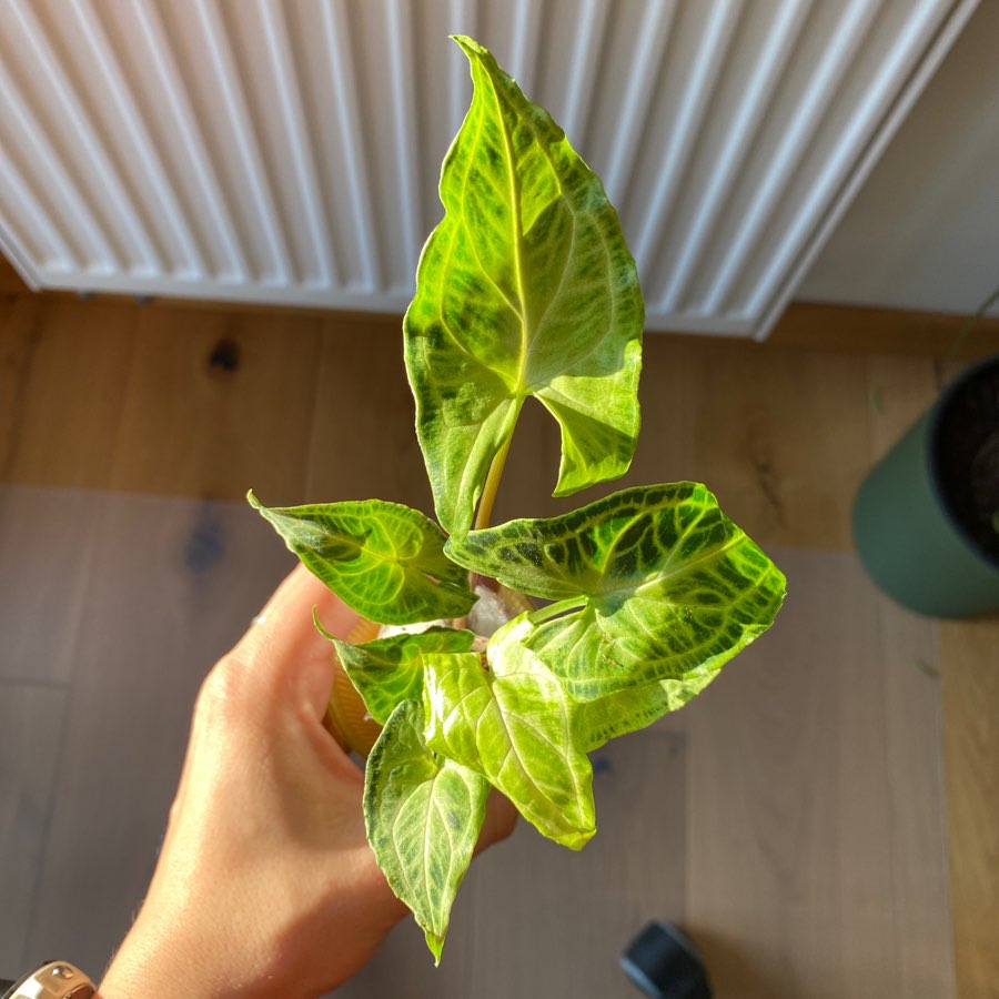 Syngonium 'Batik' lubi słońce i ciepło, ale nadmiar światła może poparzyć liście. Unikaj parapetu okna południowego.