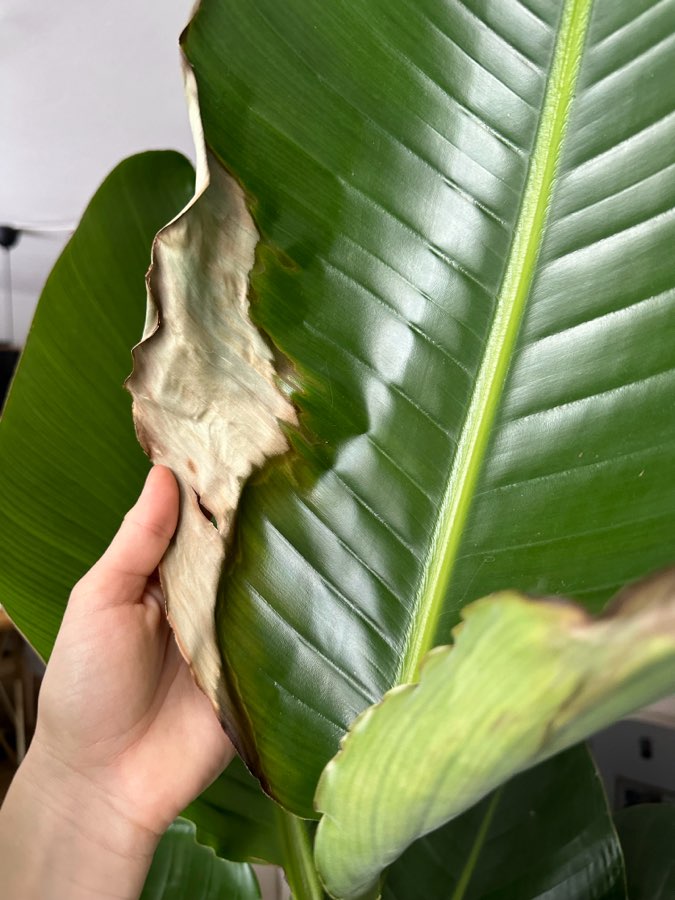 Witam, moja strelicja potrzebuje pomocy. Jej liść zaczął schnąc. Roślina kupiona około 2 miesiące temu, od razu przesadzone w ziemię typu bigos. Stoi przy balkonie wschodnim. Podlewana dopiero wtedy gdy ziemia przeschnie. Sprawdzam na długość palca. W domu wilgotność na poziomie 45%.