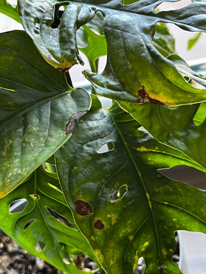 Pomocy! Co znowu? Miesiąc temu odratowana dzięki Wam Mospilanem z wciornastkow.. a teraz? Nagle czarne plany na liściach z żółtą obwódką.. Sucho? Mokro? Grzyb? HELP!