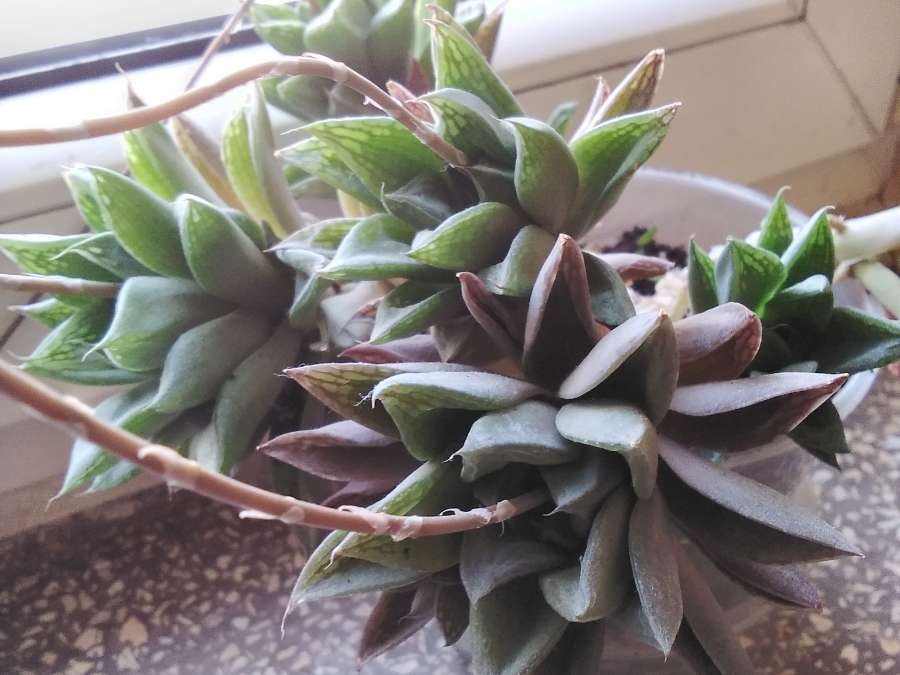 Proszę o identyfikację. Co to za sukulent? Kwitnie małymi białymi kwiatkami na długich łodyżkach. Czerwienieje na słońcu. Lubi rzadkie podlewanie. Czy można go jakoś odmładzać gdy uschną dolne liście? Czy mogą go zaatakować wciornastki? Czym je wtedy zwalczać?