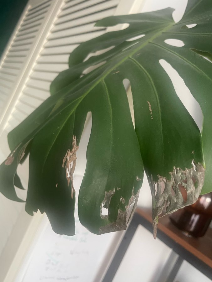 Co się dzieje z moją monsterą? Zauważyłam ostatnio kilka ziemiórek. To możliwe, żeby tak obgryzły liścia?