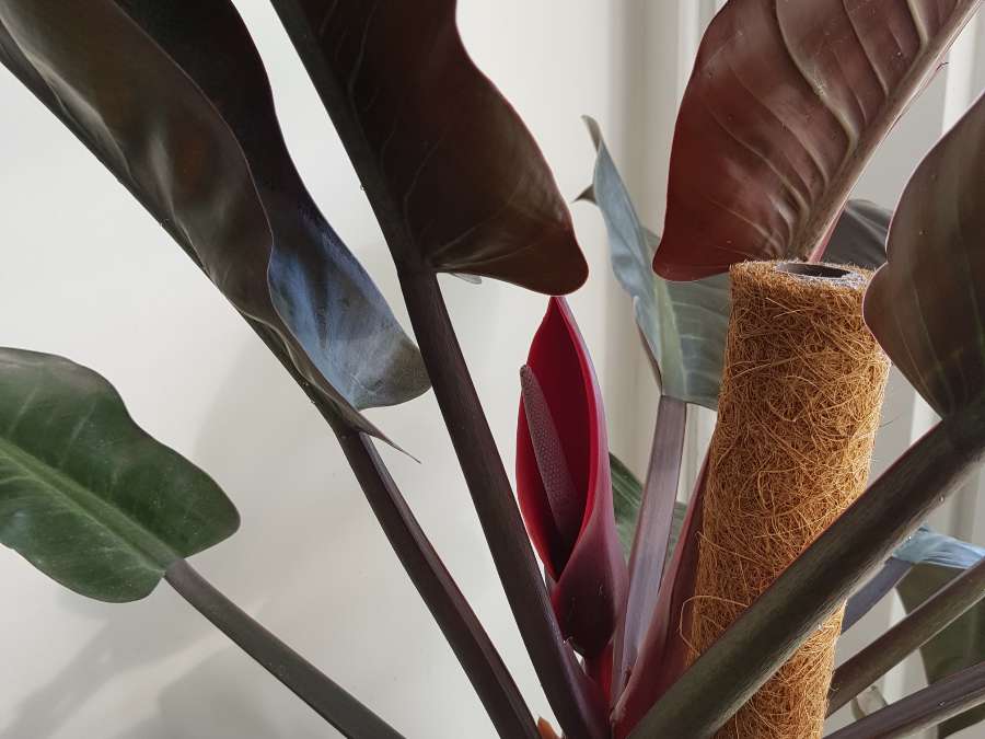 Oto kwiat filodendrona Imperial Red. Mam go około 7 lat i dopiero w tym roku zaczął kwitnąć, więc się chwalę sukcesem.