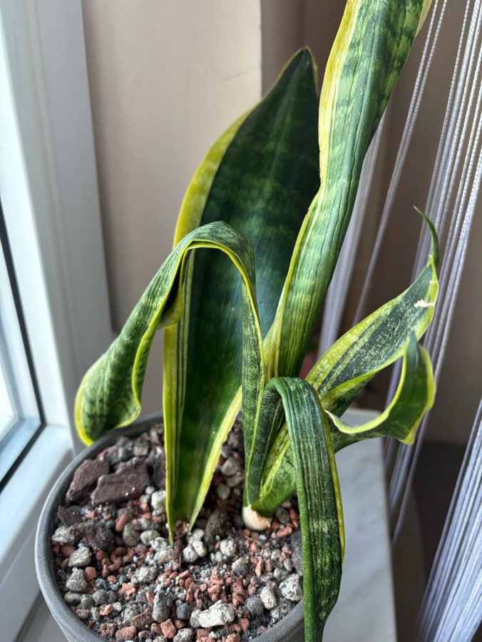 Hej, czy ma ktoś pomysł co się dzieje z moją Sansą? Od dłuższego czasu, niektóre liście są oklapnięte, marszczą się. Siedzi w przepuszczalnej mieszance (sama robiłam), podlewana rzadko. Choruje? Ogólnie było w tej doniczce klika sadzonek (?) / kłącz (?), ale coś im się porobiło przy samej ziemi i je wyrzuciłam bo całkiem zmarniały. W miejscu przy ziemi były trochę rude, trochę jakby podgnite? Ale tak jak mówię, podlewam bardzo rzadko.